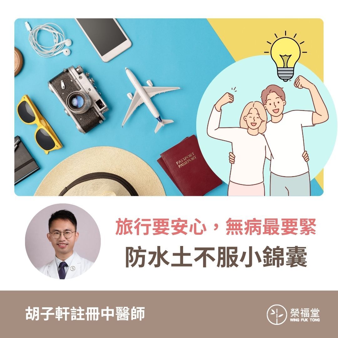 中醫說「小兒脾常不足」。旅行時奔波勞累,加上異地食物可能較油膩、生冷或不習慣,容易讓孩子的「脾胃」鬧脾氣,功能失調,產生濕氣或其他外邪影響,引發腸胃或類似感冒的不適。平時消化較弱或抵抗力較低的兒童,不妨出發1-2星期前先調好體質,做個體質評估,對症下藥,提供適合兒童的飲食建議。