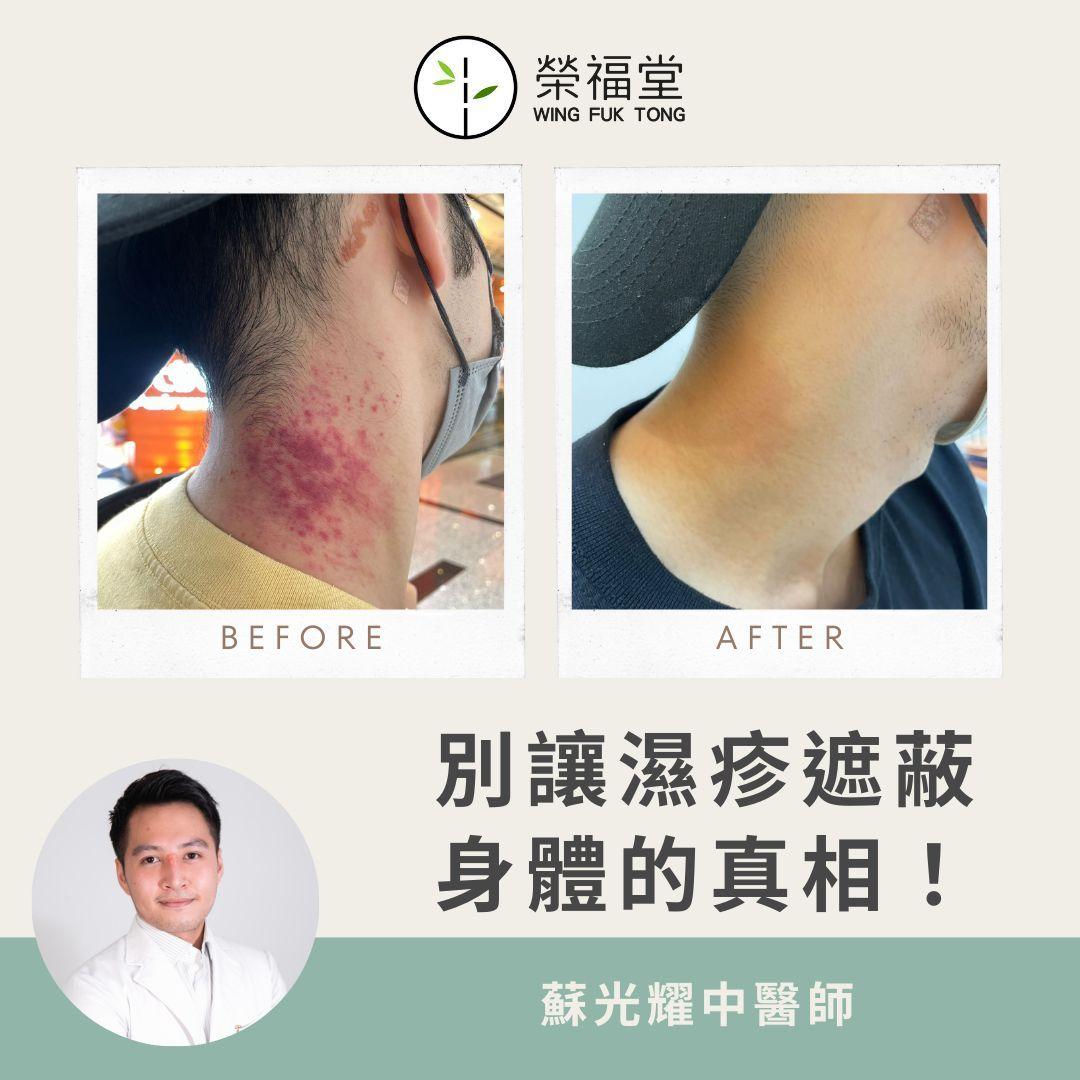在服用中藥後,頸兩側濕疹位置明顯好轉,但還有一些色素沉澱還需處理,相信日內會有更佳改善!