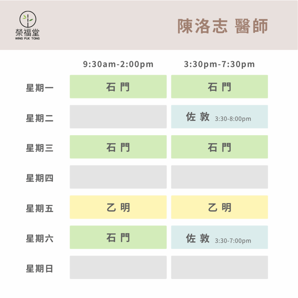 陳洛志醫師於2008年畢業於香港中文大學中醫學系,並於2010取得中大醫學院臨床神經科學碩士資格。他從事中醫臨床及培訓工作超過15年,曾擔任過博愛醫院中醫教研中心主診醫師,當中參與過出席多個國際性中西醫療結合研討會議,亦先後到訪北京著名中醫院學習。陳醫師十分著重中西醫結合精神,經常於運用傳統中醫智慧糅合現代醫學理論, 以嶄新的角度為中風、痛症、濕疹及牛皮癬等慢性疾病解其困擾。